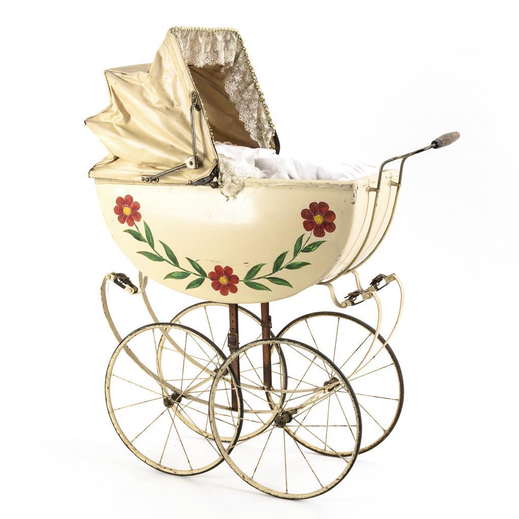 Großer Puppenwagen mit Blumenmalerei.