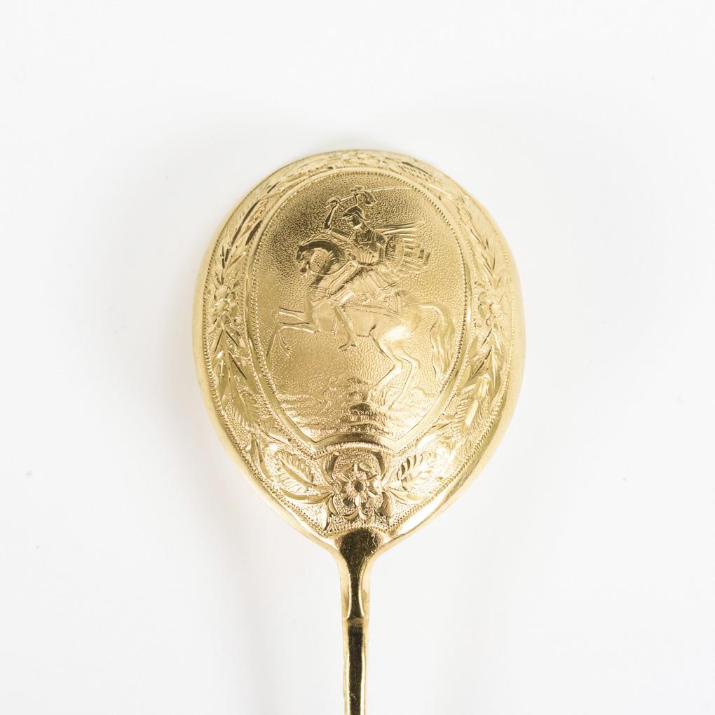 Schale: Meisterzeichen BGO/kyrill. Beschaumeister/84 Zolotniki/Stadtmarke gepunzt. Löffel: ebenfalls vollständig punziert. 1825/1877. Moskau.
