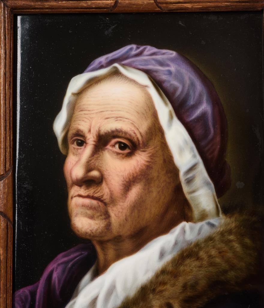 2 Porzellangemälde: Porträt einer alten Dame und eines alten Herren