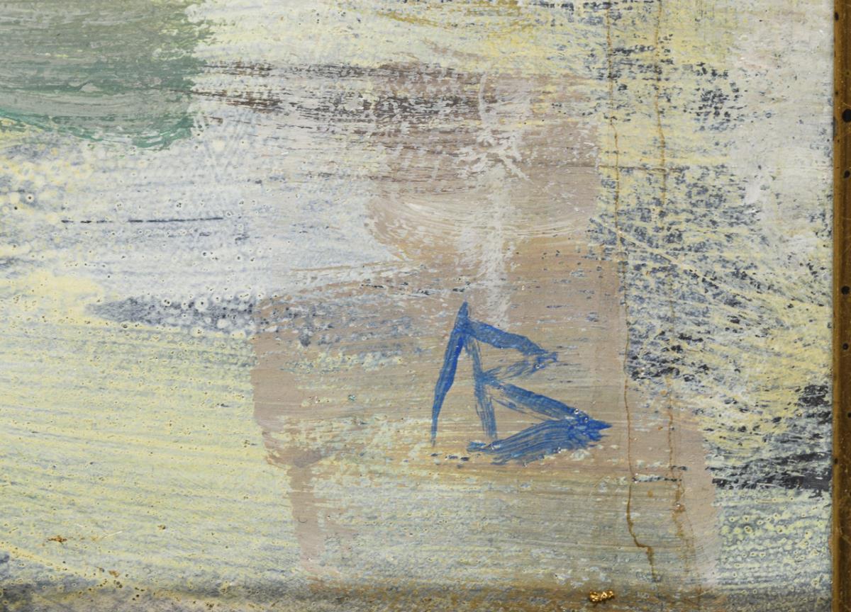 Öl/Malkarton. Rechts unten kyrillisch monogrammiert, verso kyrillisch bezeichnet/betitelt und undeutlicher Ausfuhr?- Stempel sowie Kurzbiografie. Verso datiert: 1993.
