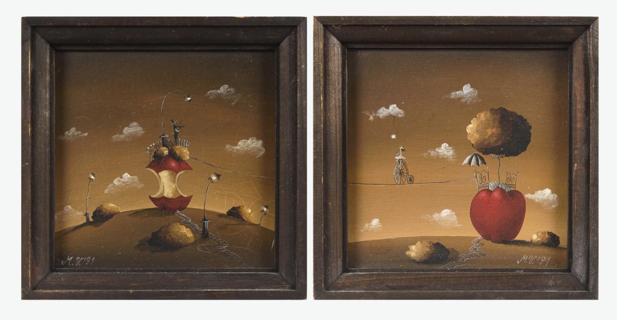 Monogrammist "M.V.". Zwei kleine surrealistische Landschaften