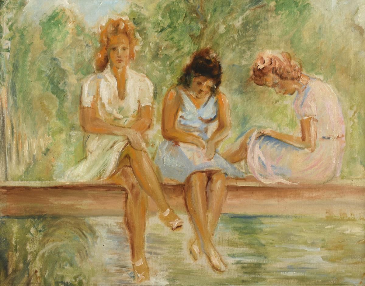 Postimpressionist: Drei Frauen auf der Brücke