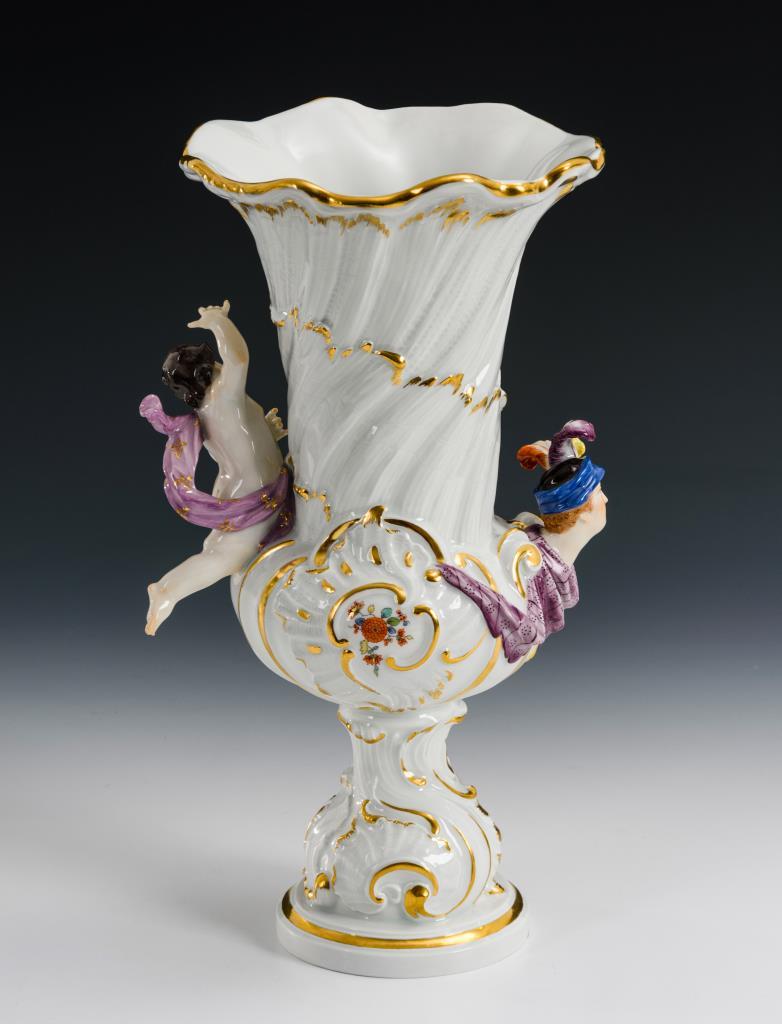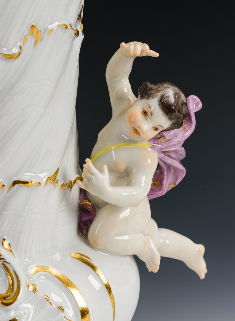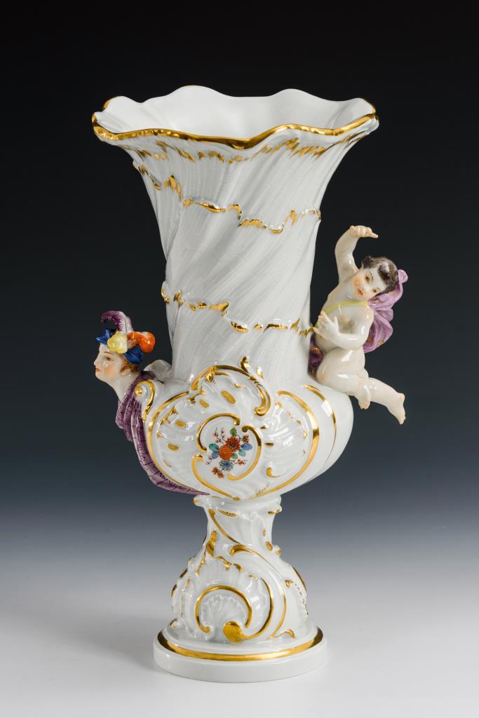 Gefußte Vase mit Jünglingskopf und Amorette.