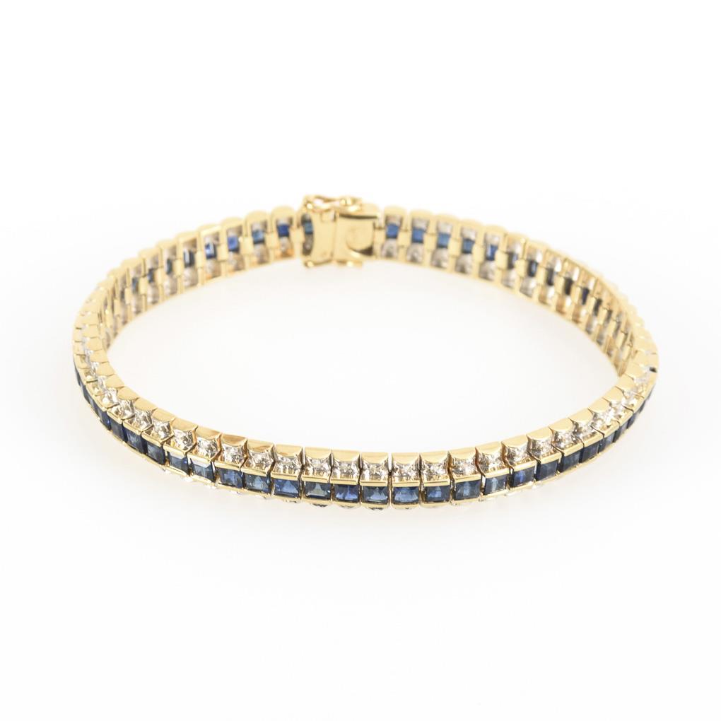 Armband mit 60 eingelassenen Saphircarrés und 120 Diamanten. Kastenschloss mit 2 Achtersicherungen.