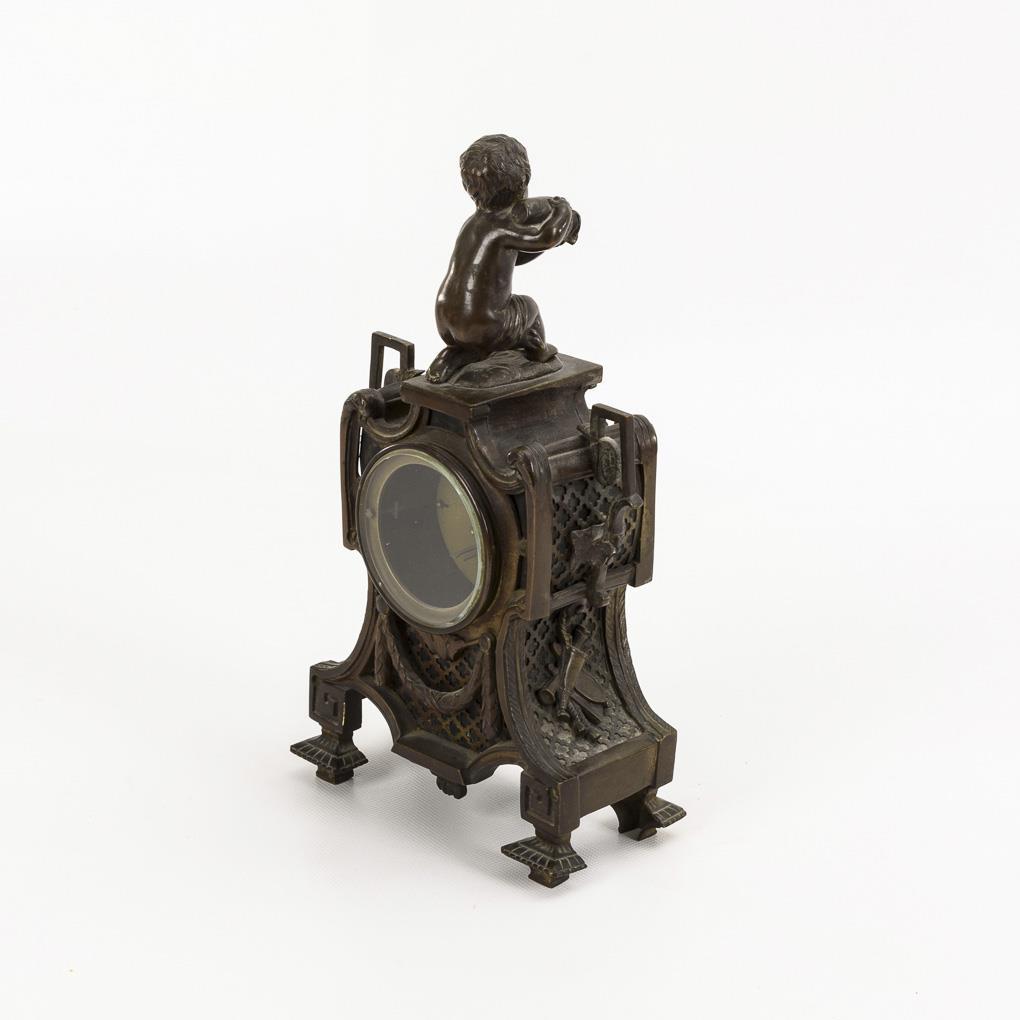 Kleine Historismus-Bronzeuhr mit Putto.
