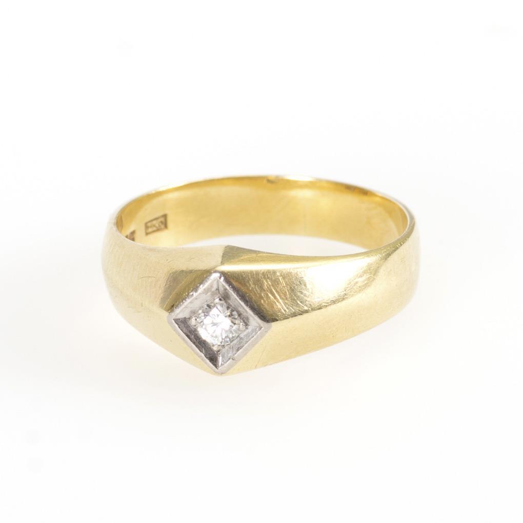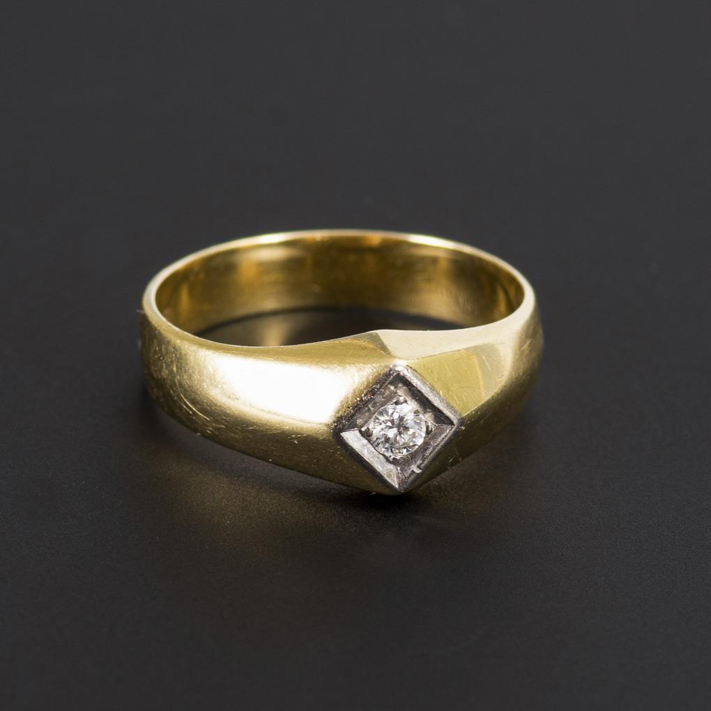 Gelbgold 585 gestempelt. Brillant 0,07 ct. Ringgröße 54. 3,1 g.