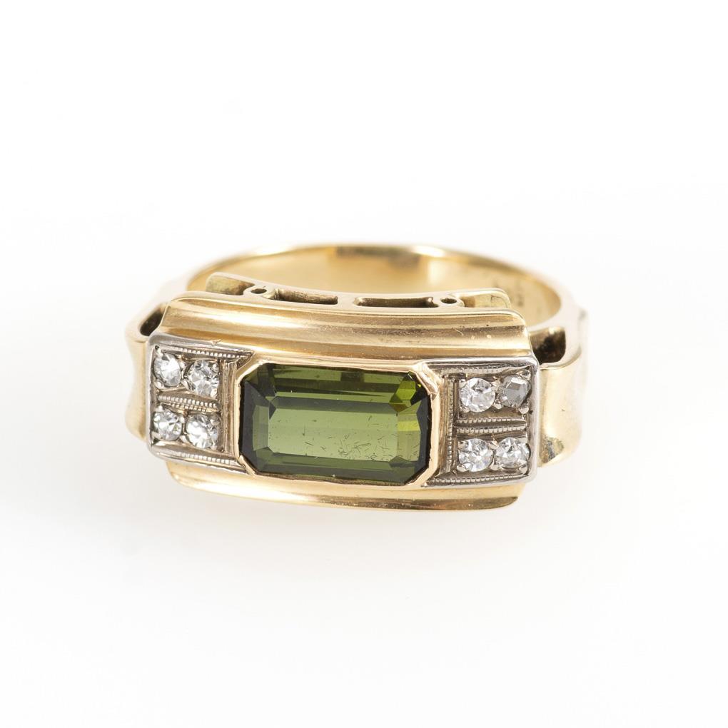 Ring mit Turmalin, Altschliff-Brillanten und Diamantrose.