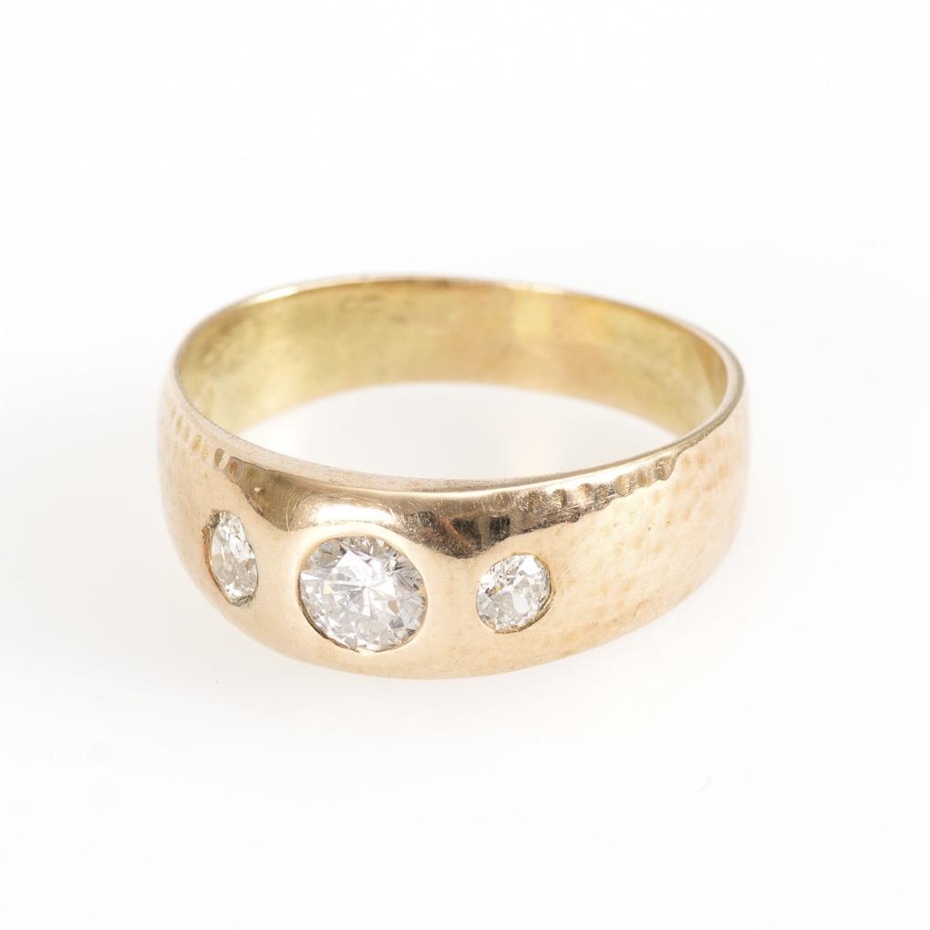 Gelbgold 585 gestempelt. Brillanten gesamt ca. 0,80 ct. Ringgröße 61. 4,7 g.