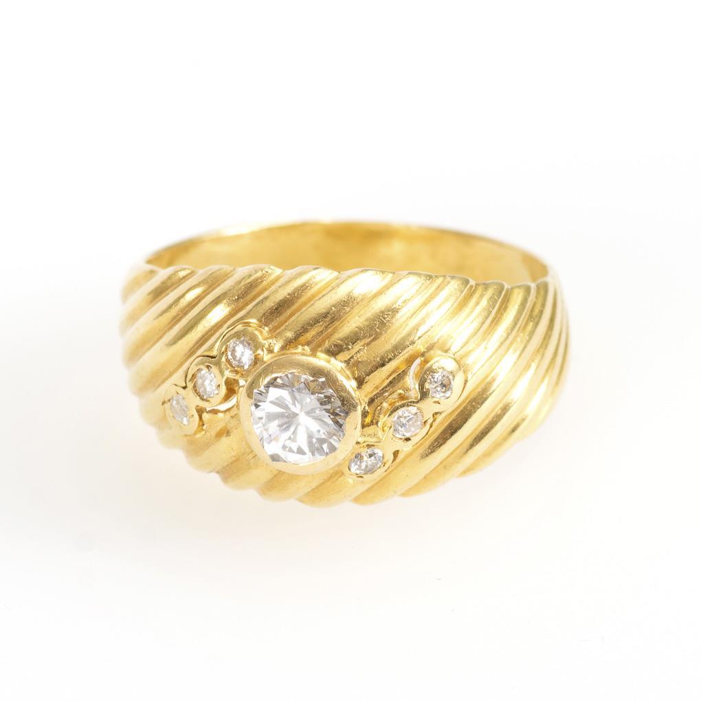 Gelbgold 750 gestempelt. Brillanten gesamt ca. 0,25 ct. Ringgröße 53. 4,2 g.