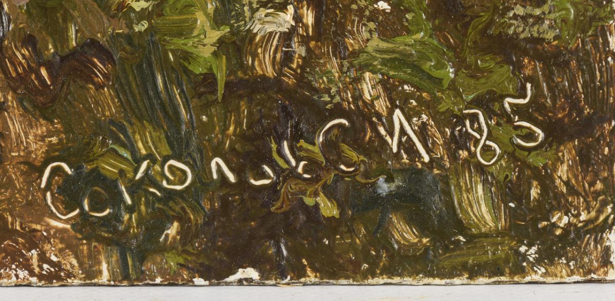 Öl/Malkarton. Rechts unten kyrillische Ritzsignatur. Datiert: (19)85.