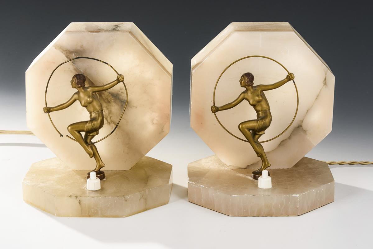 Paar Art-déco-Tischlampen mit Reifentänzerinnen.