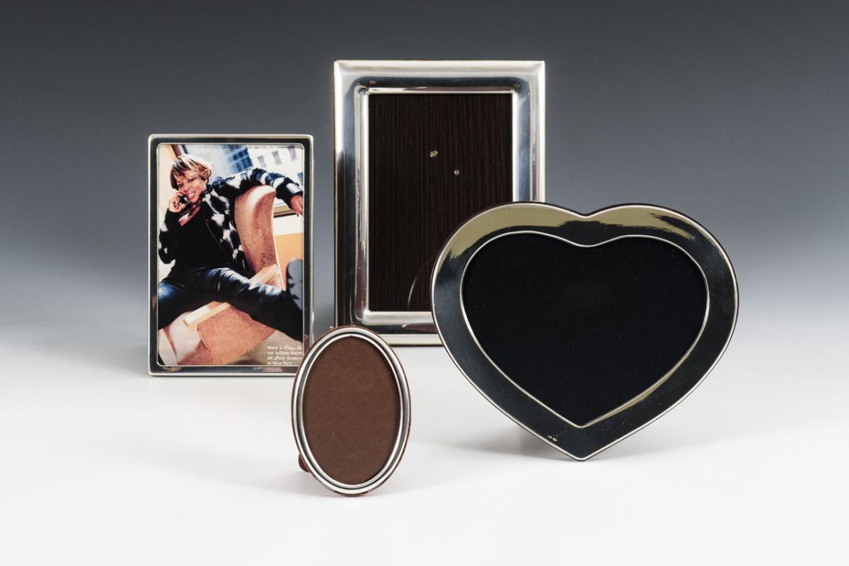 4 silberne Bilderrahmen.