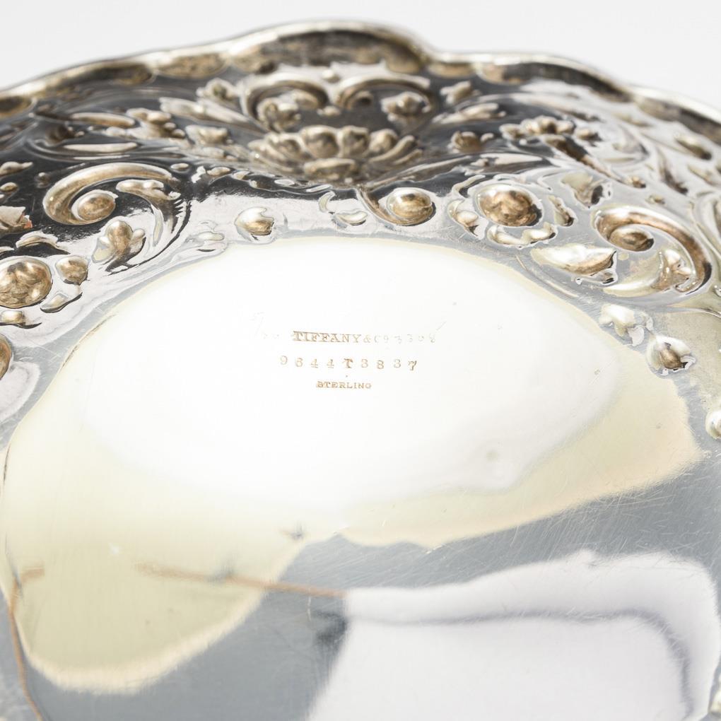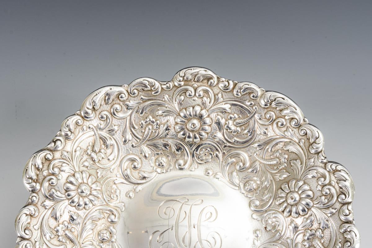 Reliefblütenschale mit ligierter Monogramm-Gravur im gewölbten Spiegel.