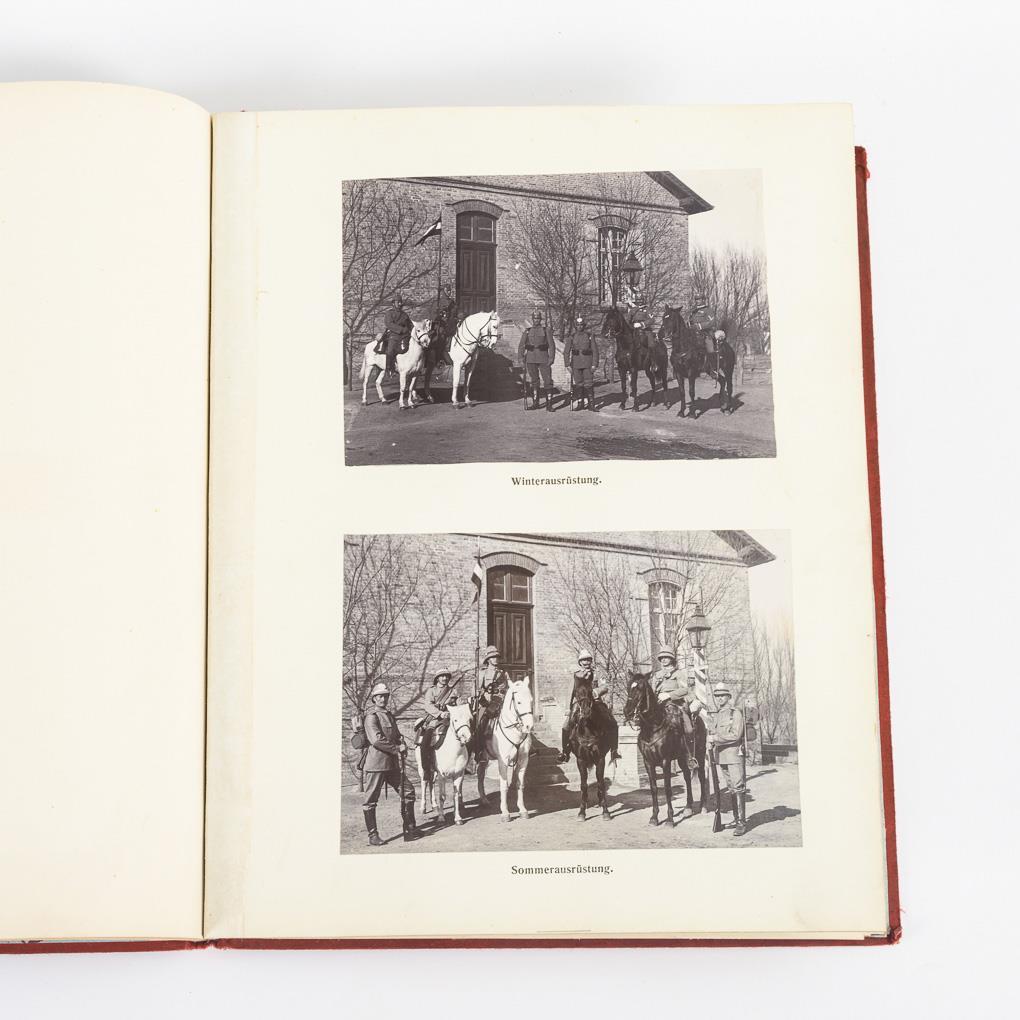 Nummeriertes Exemplar 388/800. 41 Textseiten und 22 Originalfotos, der meist fehlende Plan ist ebenfalls vorhanden. Deutsche Kolonie in China. Roter Seideneinband. Leichte Gebrauchsspuren.