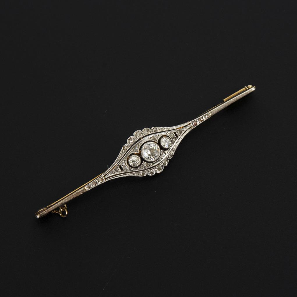 Art-déco-Stabnadel mit Altschliff-Brillanten und Diamantrosen.