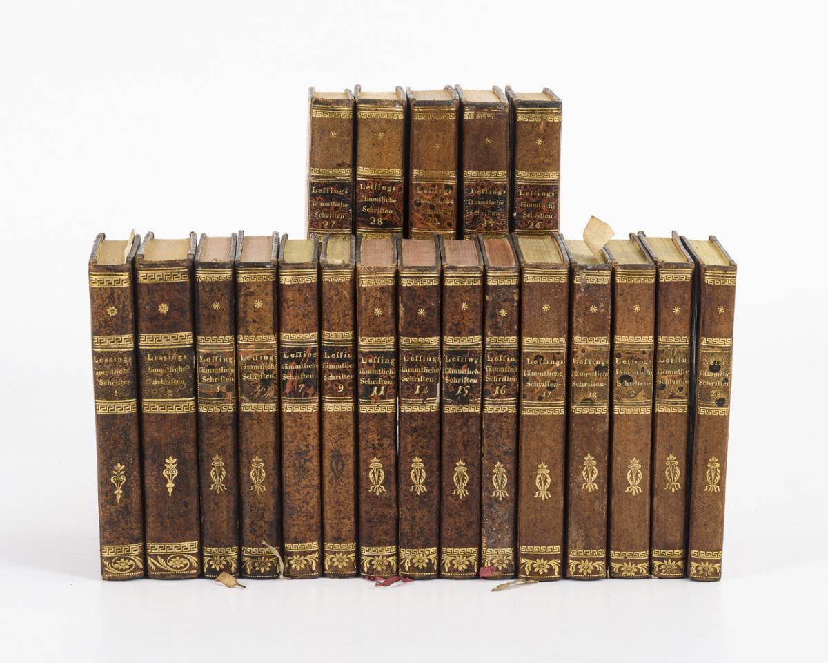 20 von 32 Bänden. Es sind vorhanden Band: 1,2, 5-7, 9, 11, 12, 15-18, 21-24, 26-29. Alle im ähnlichen, goldgeprägten Halbledereinband. Gelb und Rotschnitt. Altersspuren, wenige Bände mit äußerlichen Fraßspuren.