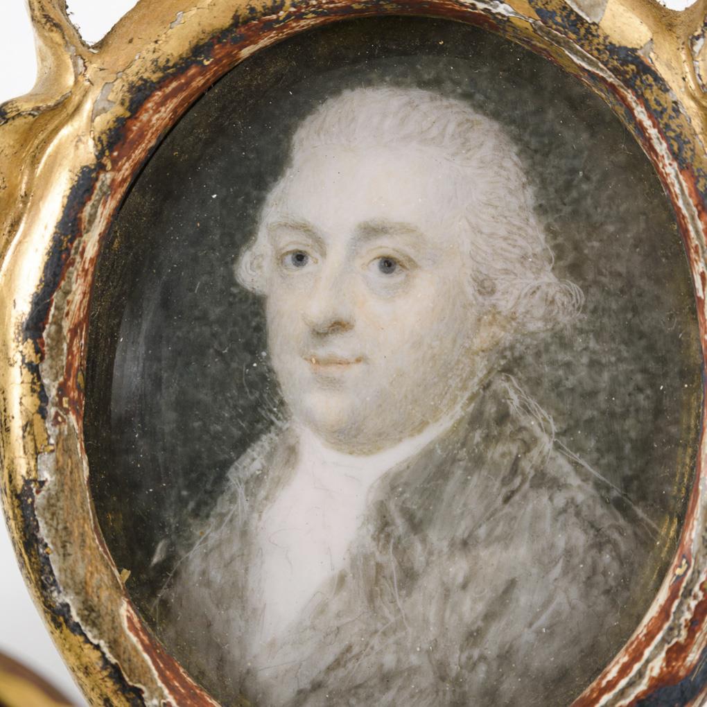 3 Miniaturen: Damenbildnis im Elfenbein-Rahmen und 2 Herrenbildnisse.