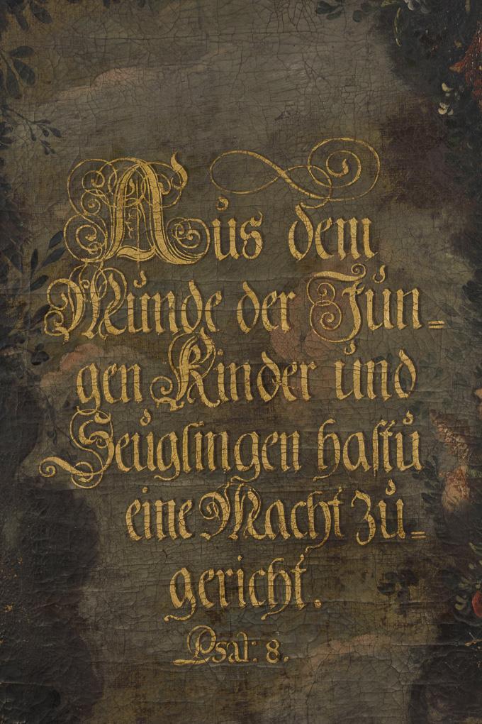 Öl/Leinwand. Unsigniert, mittig Schriftzug "Aus dem Munde der unmündigen Kinder hast du eine Macht zugericht". 17. Jh.