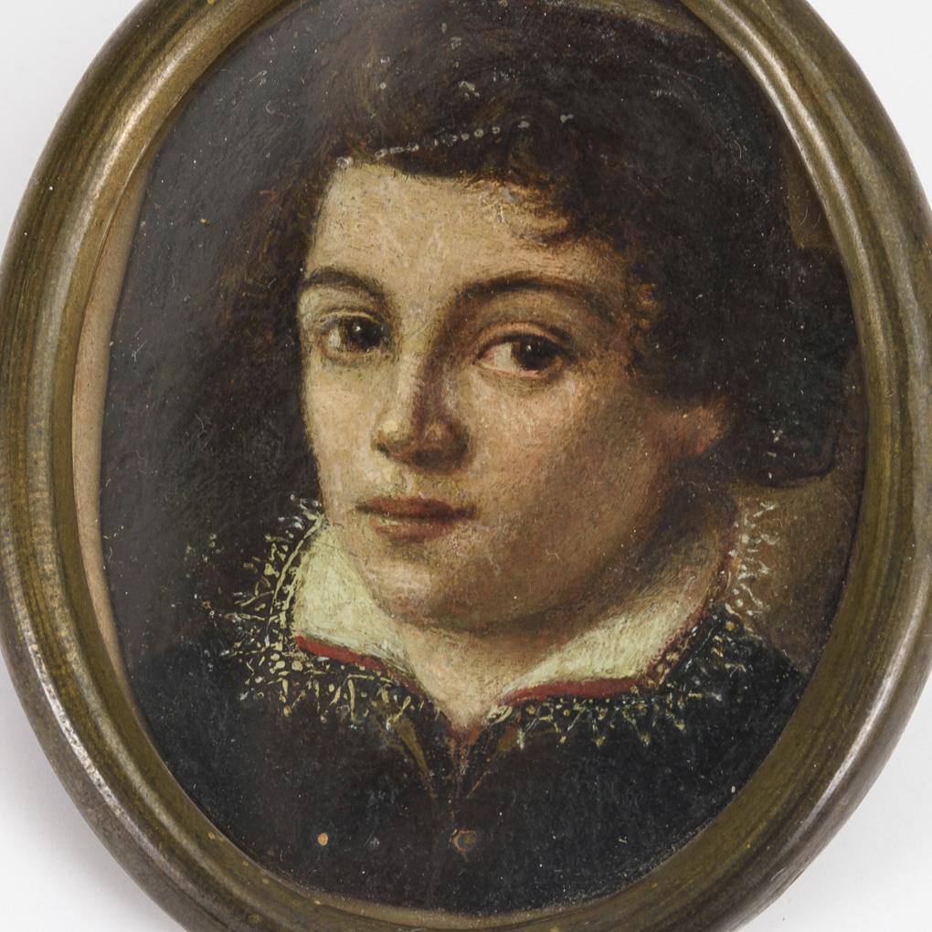 Fein gemaltes Bildnis der Jugendlichen mit Spitzenkragen. Alters-/Gebrauchsspuren.