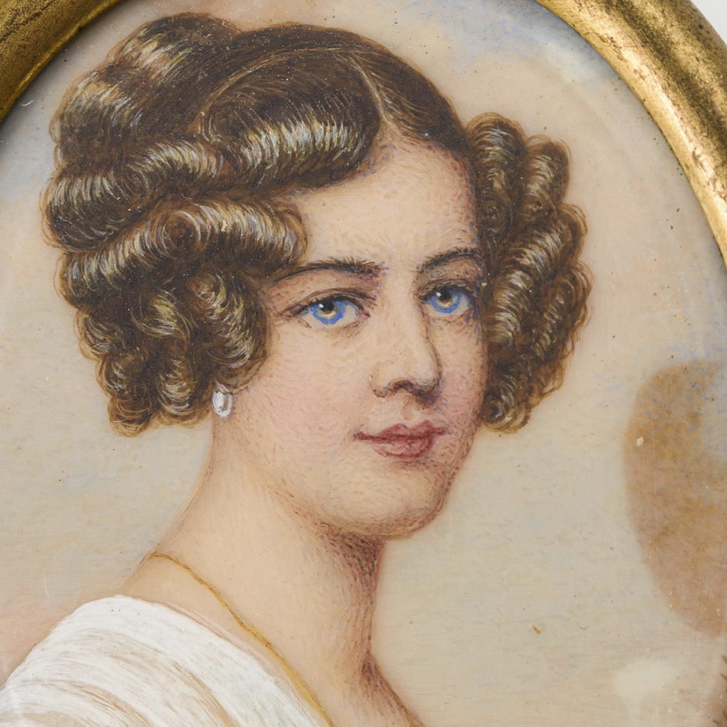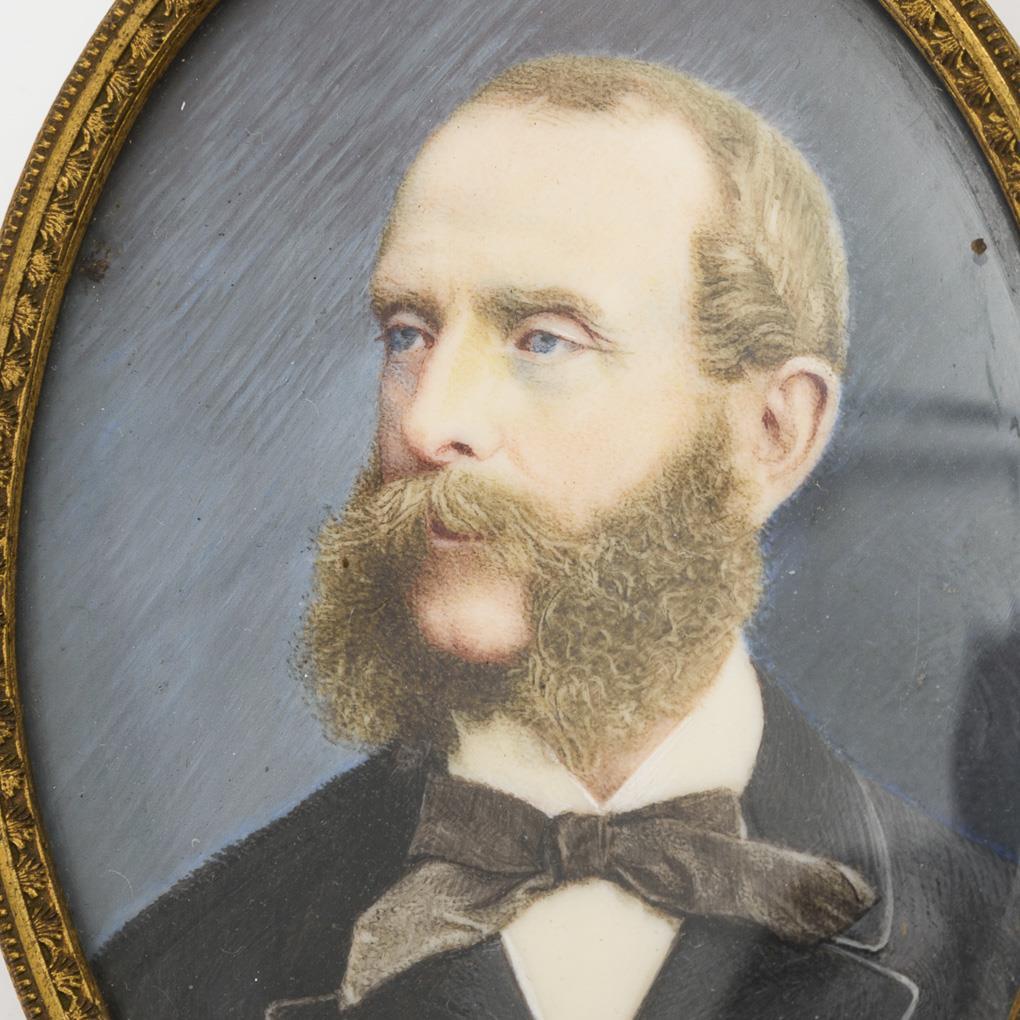 Je Tempera/Elfenbein(?), verglaste Messingleisten. Maximal 8 x 5,5 cm, Rahmen 8,5 x 6 cm.