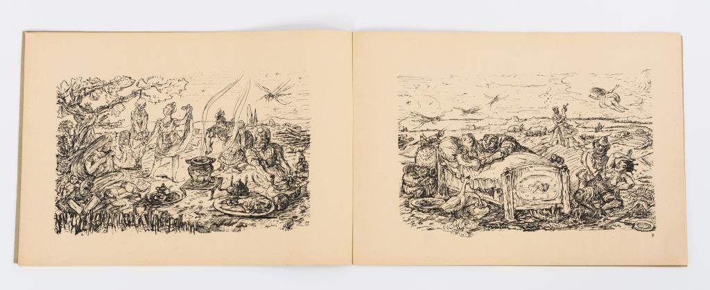 Vollständiges Heft "Rauhnacht - Zeichnungen von Alfred Kubin" anlässlich der Ausstellung im graphischen Kabinett Galerie Henning, Halle (Saale) mit 13 nummerierten Abbildungen und Vorwort von Friedrich Wilhelm Blaschke, Einband mit schwarzer Katze und Marder am Scheideweg. Minimale Gebrauchsspuren.