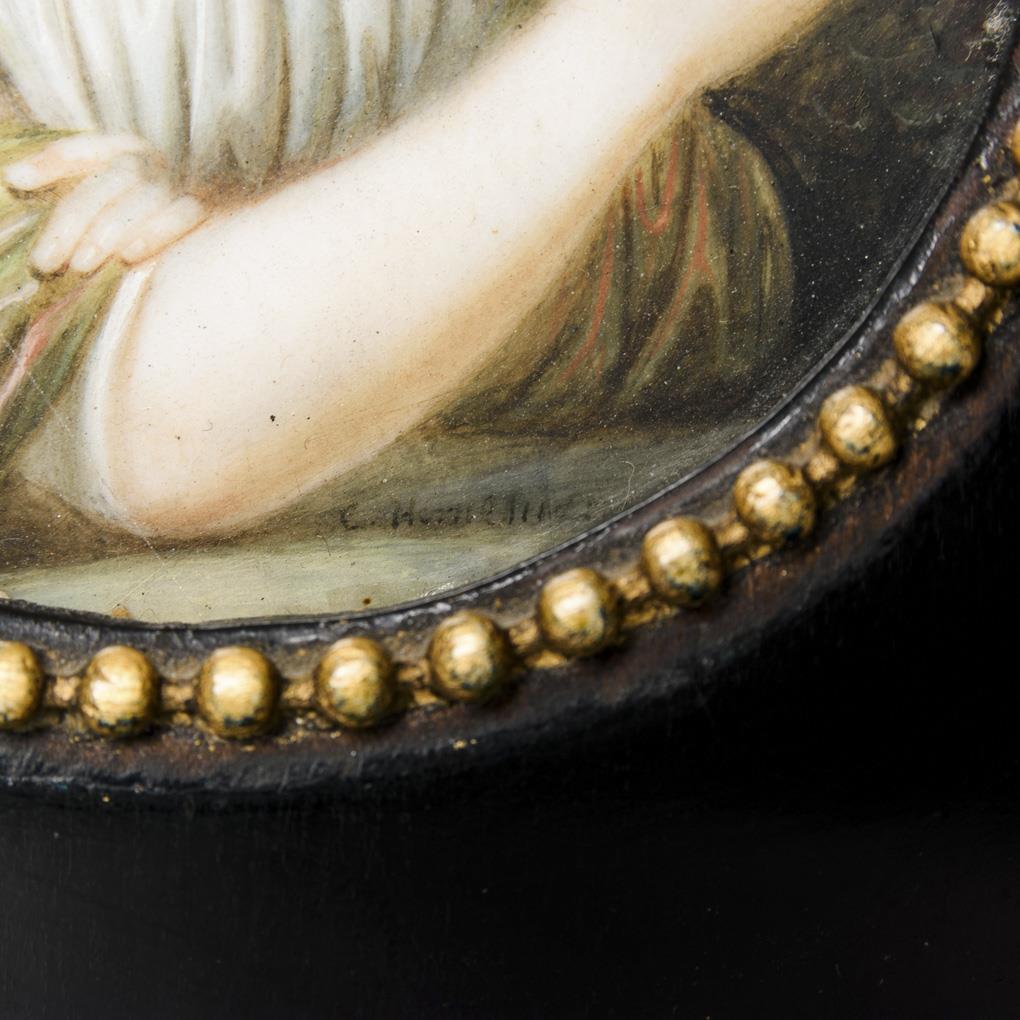 Wohl Tempera, verglast, im wohl originalen Holzrahmen mit Messing-Beschlägen. 9,5 x 7 cm, Rahmen 18 x 17 cm.