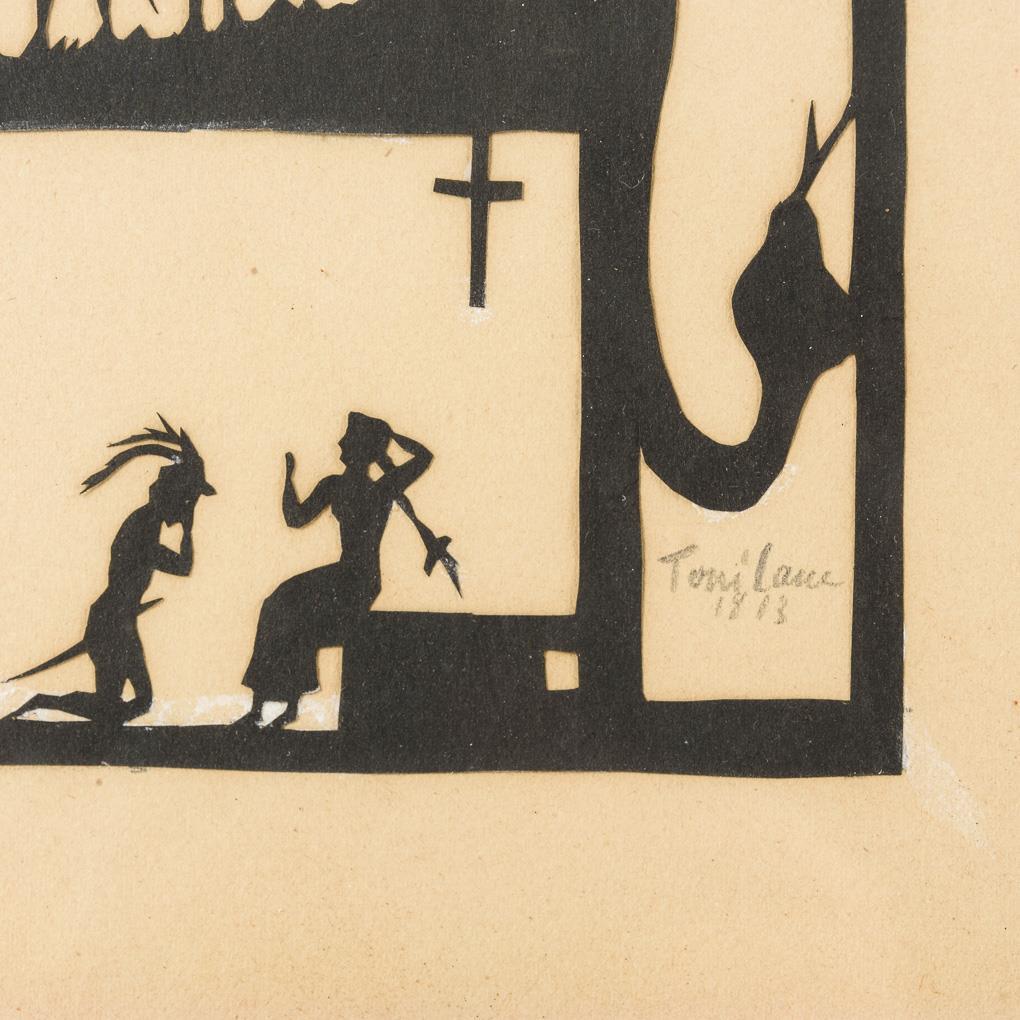 Gerahmter Scherenschnitt mit der Faust-Geschichte