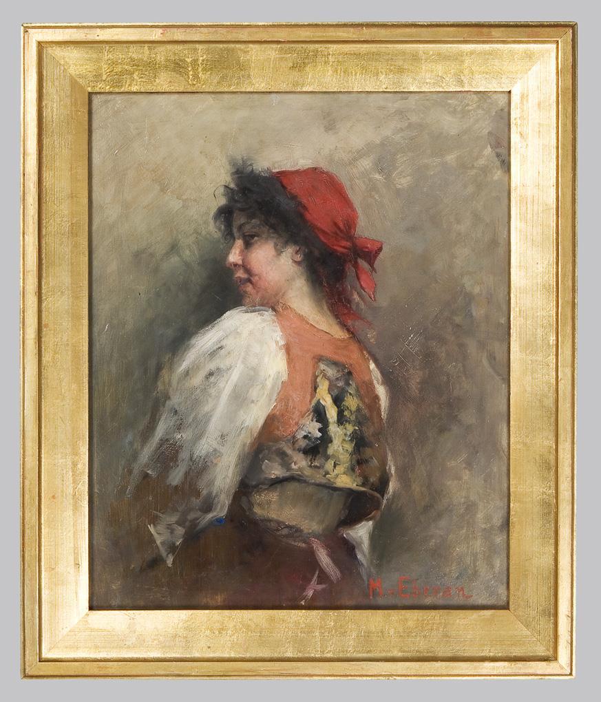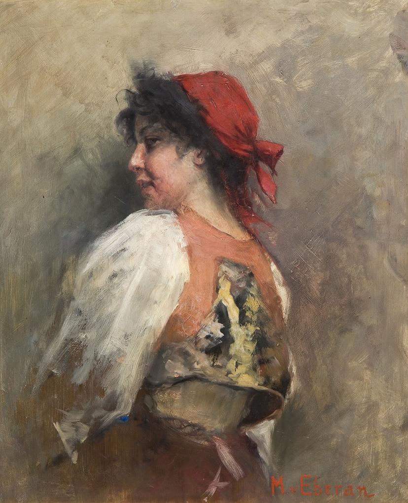 Kraftvolle Porträtstudie mit lebendiger Wirklichkeitstreue. Signiert: M. von Eberan. Profilierter Goldrahmen.