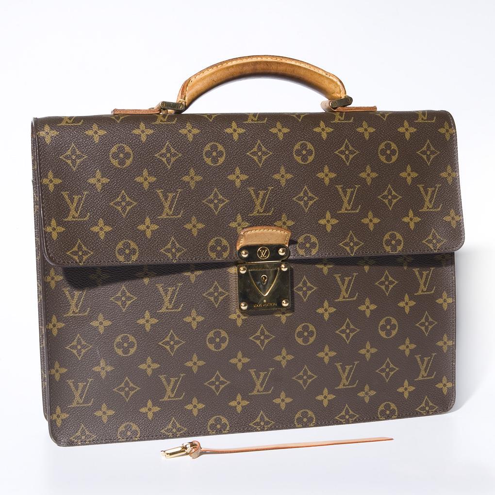Paris, Made in France. Modell: M 53026. Classic LV-Monogramm Canvas, beweglicher Ledergriff. Frontklappe mit Clipverschluss und Schloss. Innen Leder und Textil. 1 großes Hauptfach mit Seitenfalte, 1 flaches Innenfach, 1 kleines Innenfach mit Reißverschluss. Rückseitig 1 flaches Außenfach. 2 Schlüssel am Original-Lederband. Unsisex-Business-Tasche.