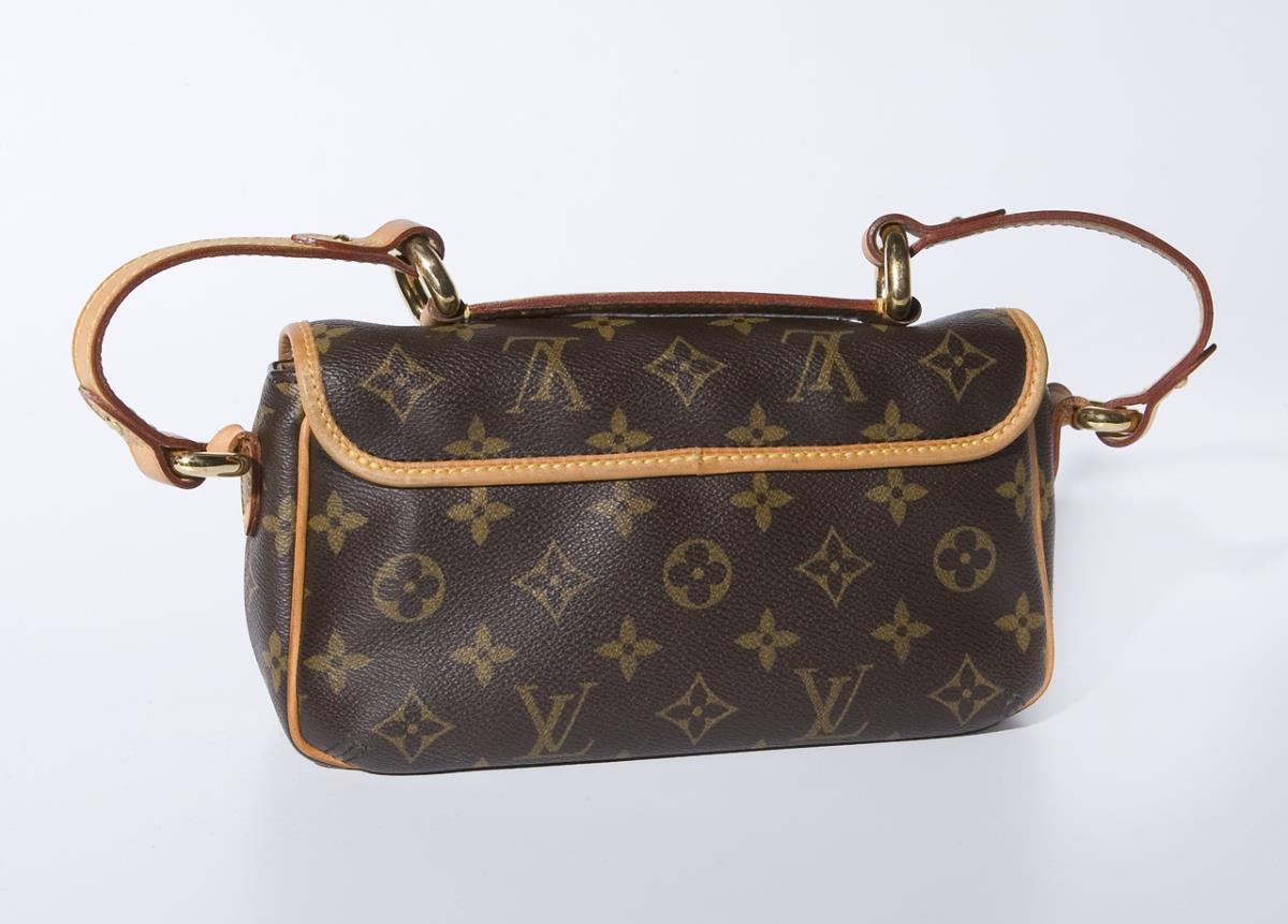 Paris, Made in France. Modell: M 40078. Classic LV-Monogramm Canvas mit Lederbesatz. Frontklappe mit Drehverschluss. Aufwendig gearbeiteter Lederhenkel mit 4 großen Ösen. Innen Textil, 1 großes Hauptfach, 1 flaches Innenfach.