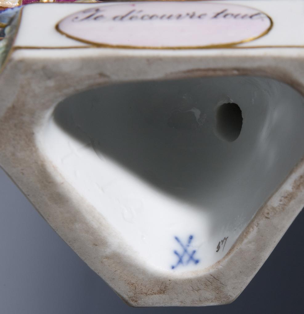Modell von Michel Victor Acier 1777. Aus einer Serie von 16 Figuren. Farbig bemalt, gold staffiert. Ritzmarke, Malermarke, Schwertermarke. Eine Fingerspitze bestoßen.