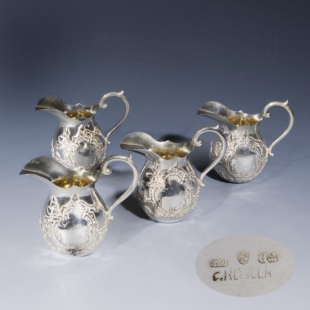 4er Satz Milchkännchen. Gebrüder Kühn, Schwäbisch Gmünd für C. Heisler, Hofjuwelier in Mannheim.