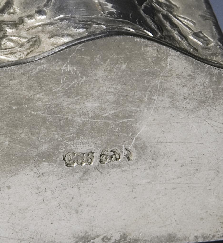 Silber, reliefiert und filigran gearbeitet. 1 Dose, 1 Amphore, 1 Fußbecher, 1 Tisch, 1 Stuhl, 1 Ruderboot. 4 Teile mit teilweise undeutlichen Punzen. Tisch minimal defekt.
