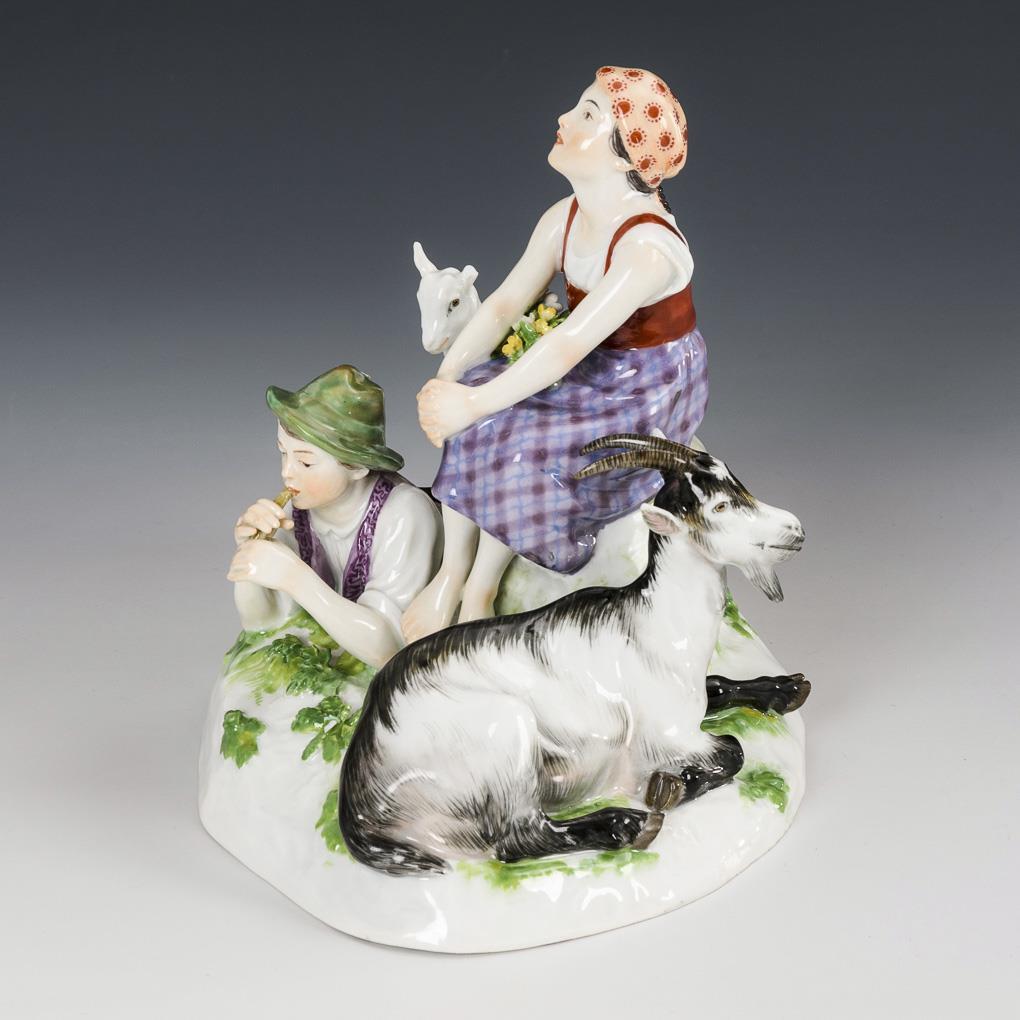 Kinderpaar als Ziegenhirten mit Ziege und Zicklein