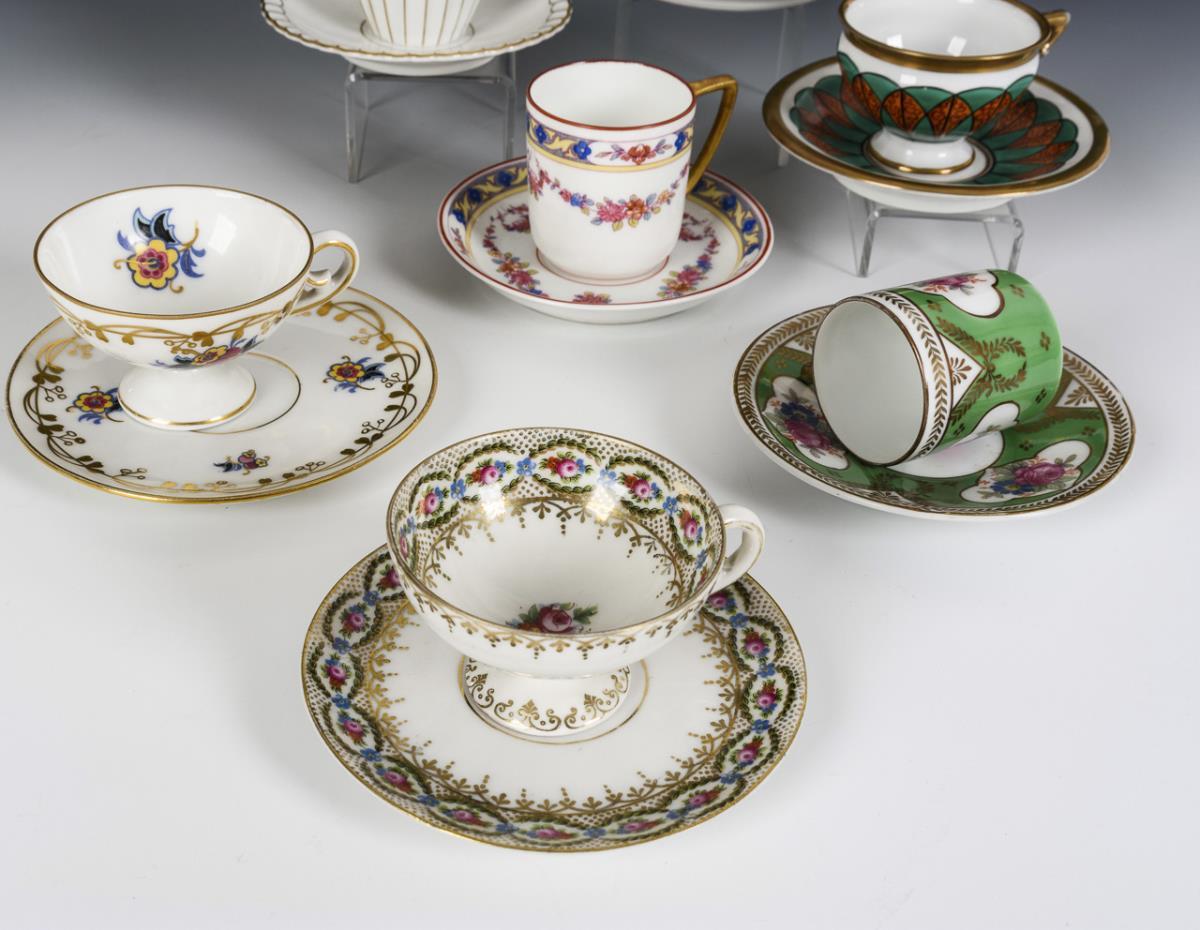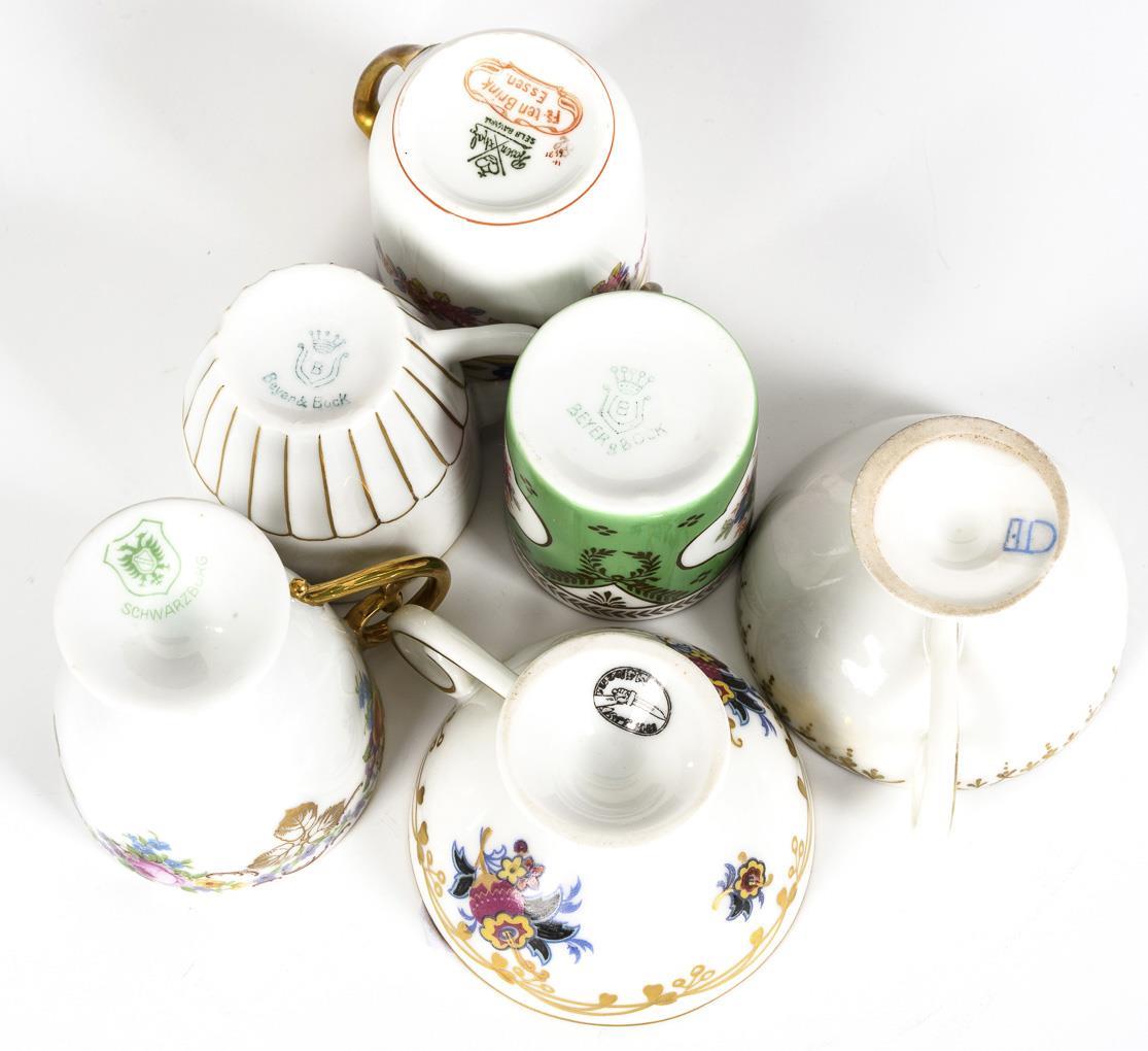 Verschieden gemarkt, 20. Jh. Teils polychrom bemalt, teils farbiges Dekor, alle goldstaffiert.