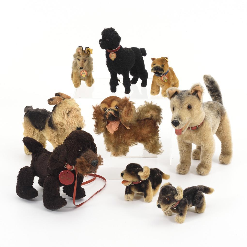 Konvolut 9 Hunde. 8x Steiff, 1x Schuco "Trip-Trap".