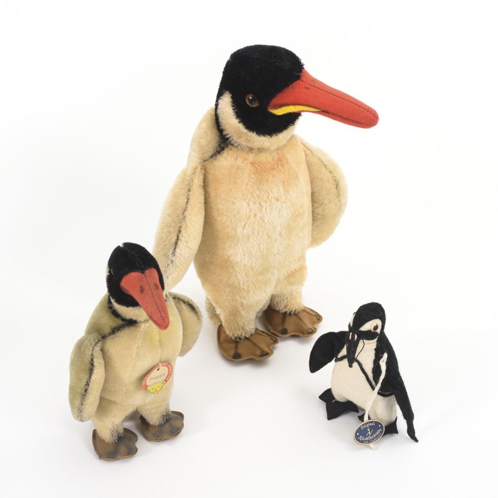 Verschiedene Steiff-Tiere und 1 Filz-Pinguin mit Schild "Original i Künstlerpuppe, Made in Germany" (Vorkrieg). Altersspuren.