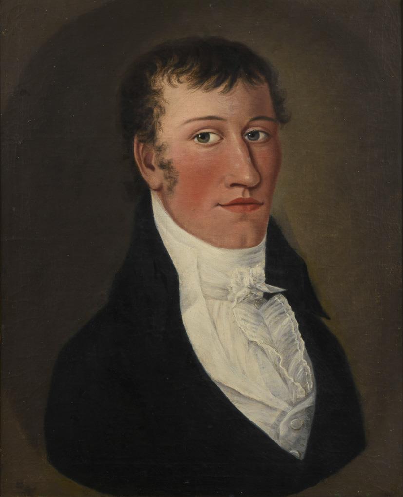 Porträt eines jungen Mannes in der Mode des frühen 19. Jahrhunderts. Retuschiert.