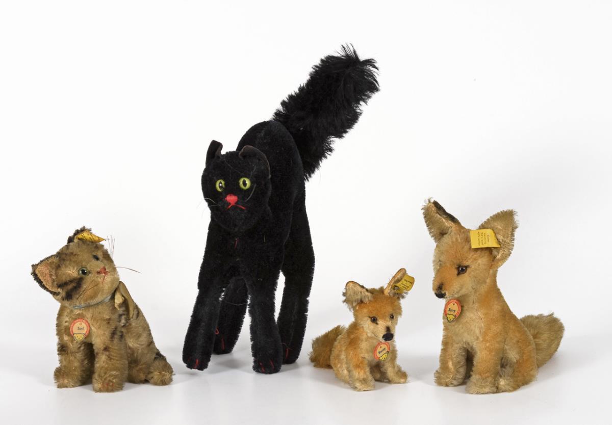 Konvolut 6 Katzen und 2 Füchse. Steiff.