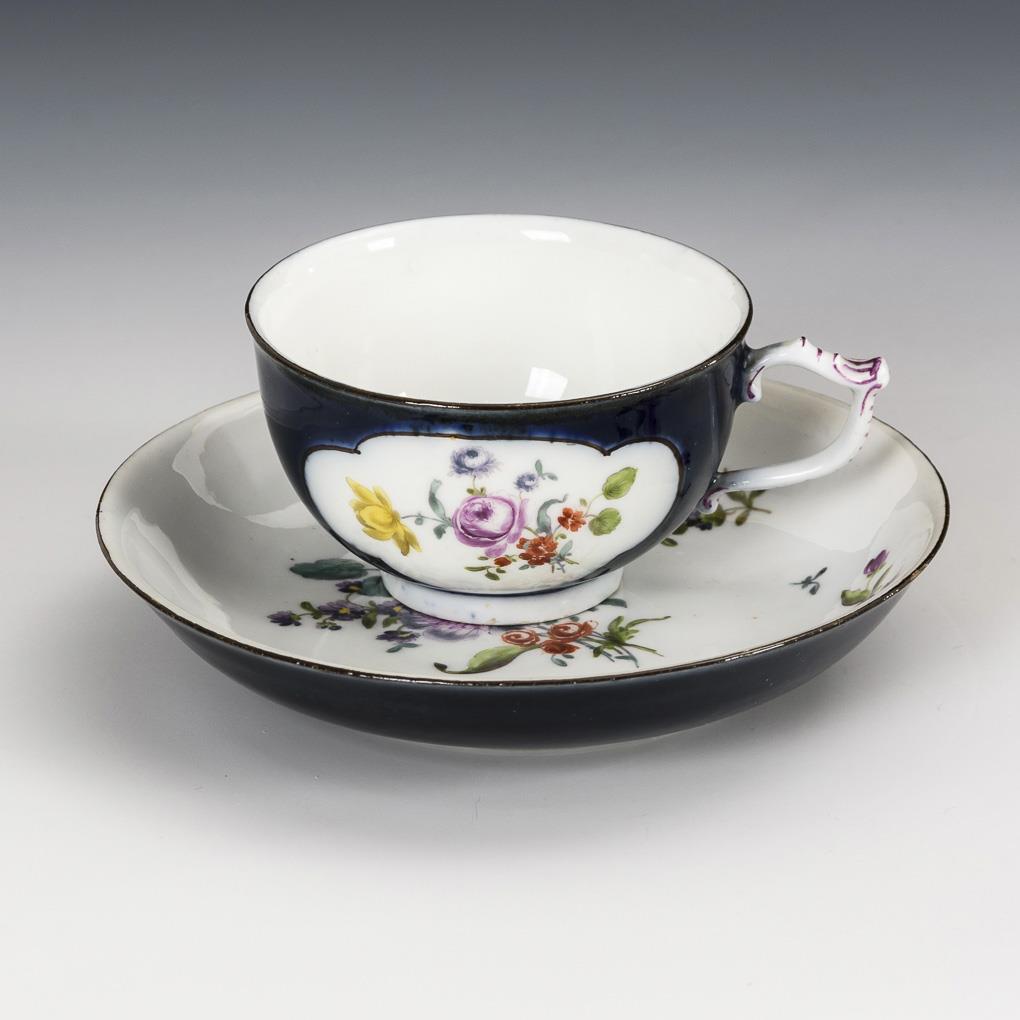 Barocke Tasse mit Blaufond. Meissen.