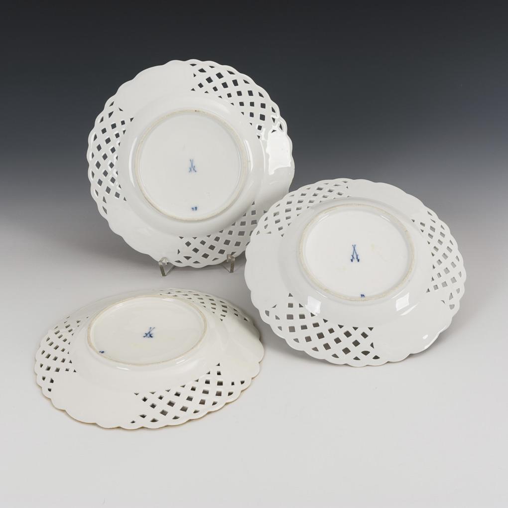 3 Zwiebelmuster-Durchbruchteller. Meissen.
