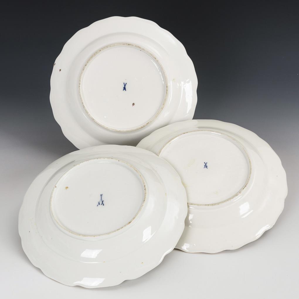 Speiseteller mit mehrpassigem Rand. Partiell berieben, 2 Teller mit Restaurierung an der Fahne.