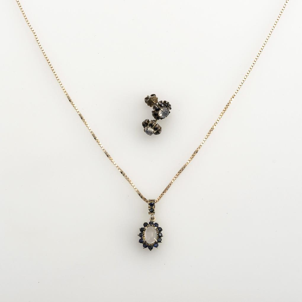 2-teiliges Schmuckset mit Mondsteinen und Saphiren.