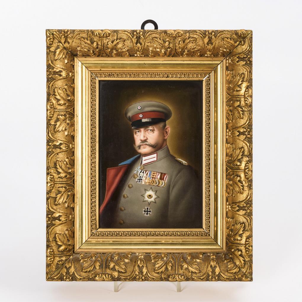 Porzellangemälde: Porträt Paul von Hindenburg.