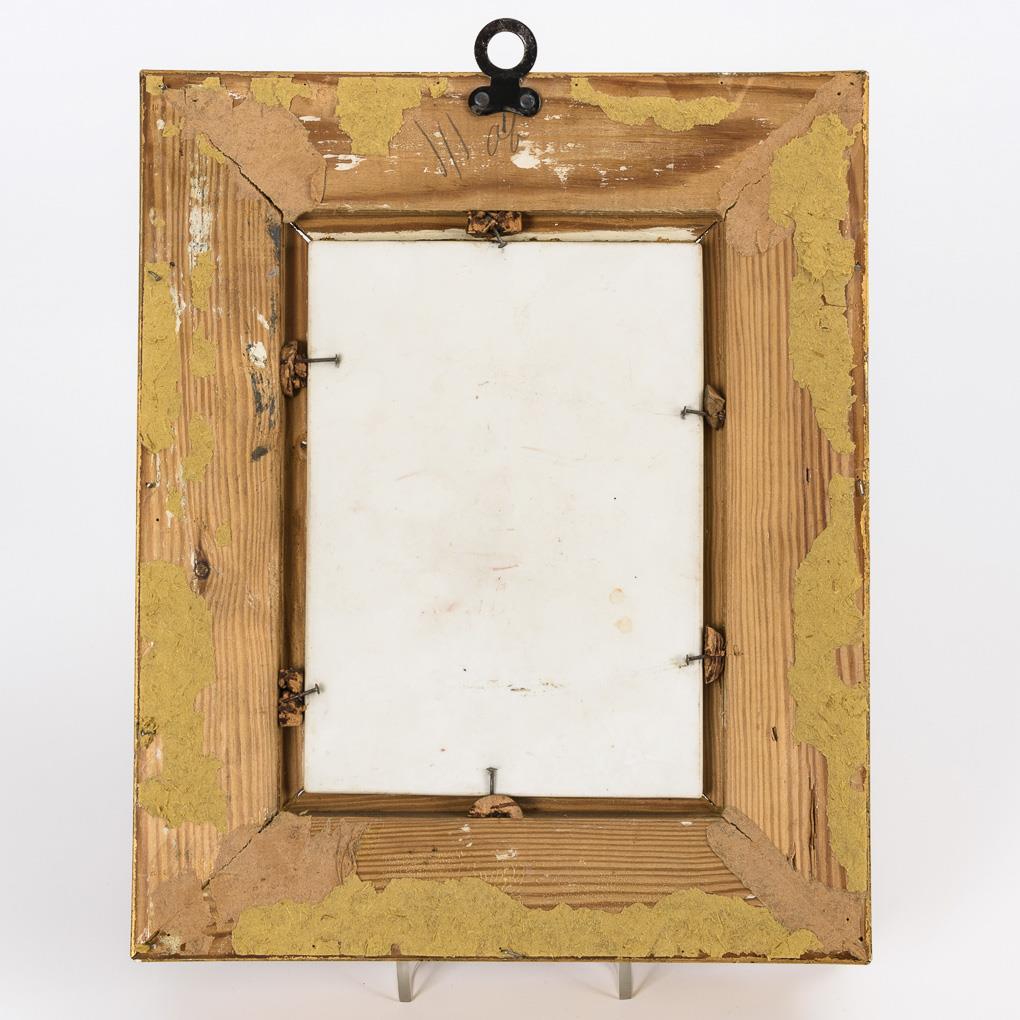 Polychrom bemalt. 18 x 13 cm, im Goldstuckrahmen (29 x 24 cm).