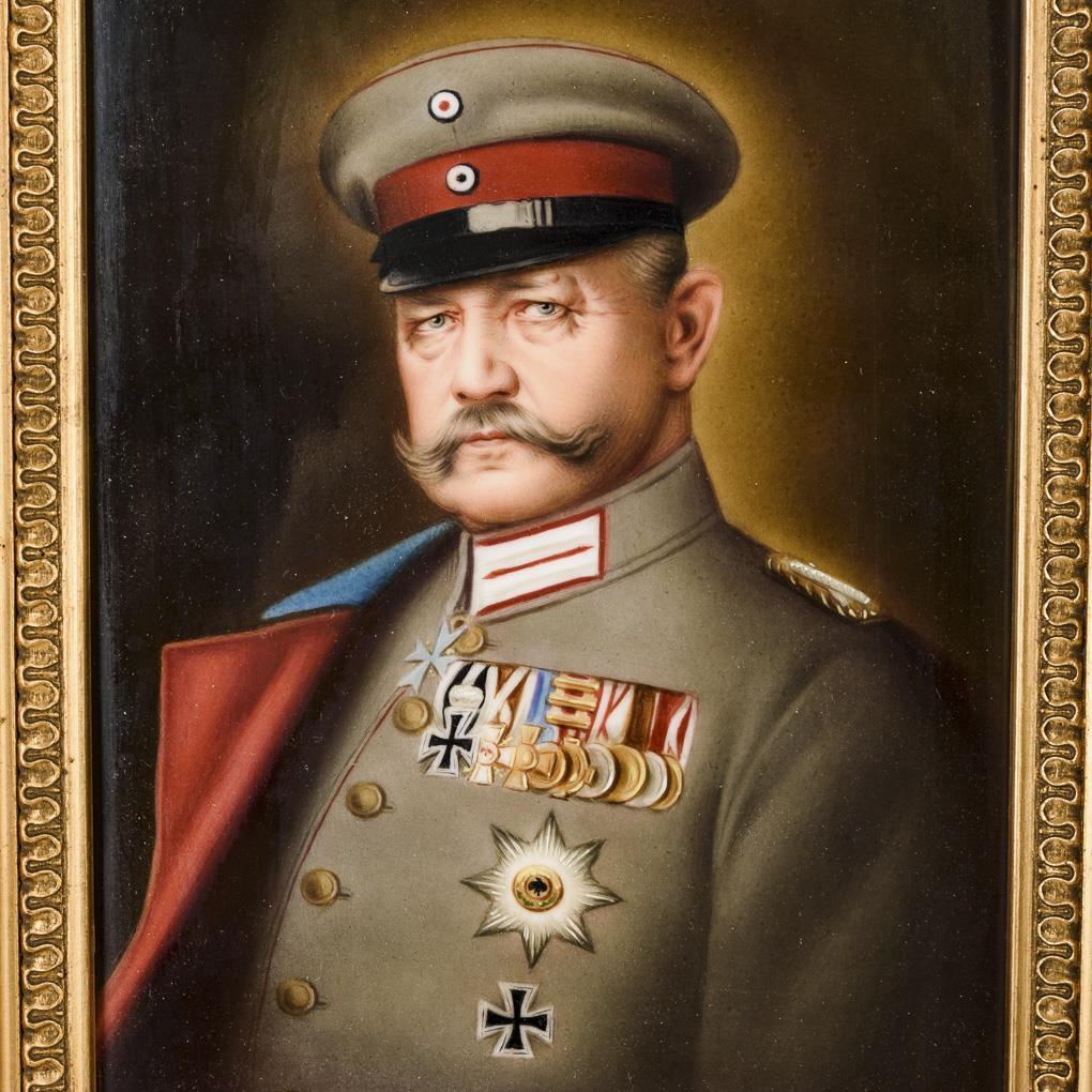 Porzellangemälde: Porträt Paul von Hindenburg.