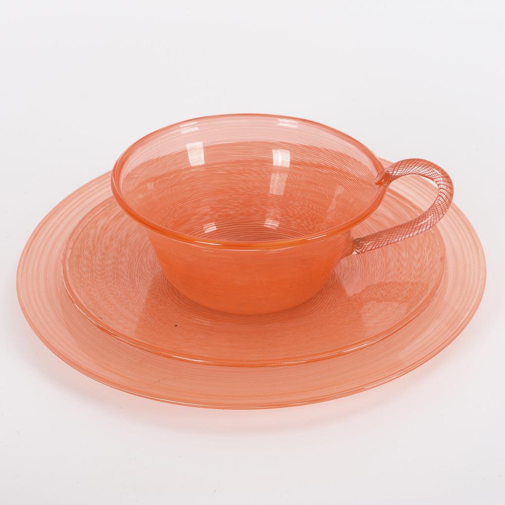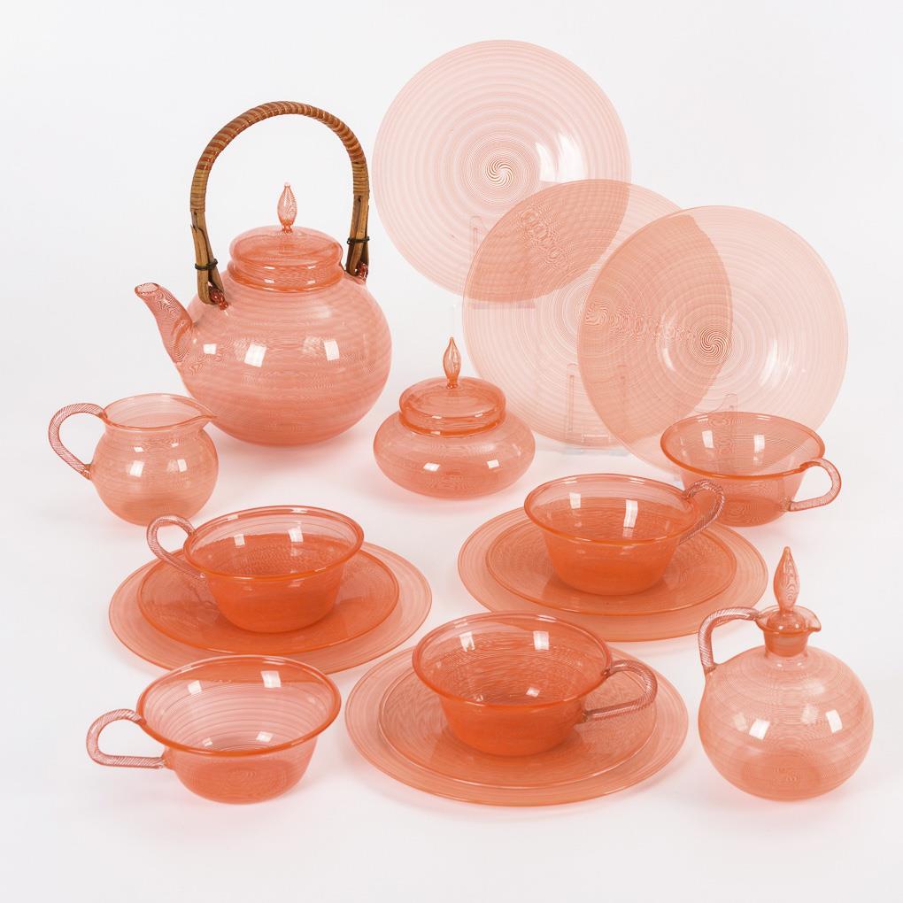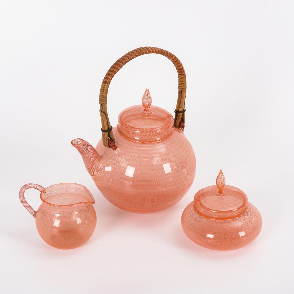Seltenes Fadenglas-Teeservice. Fa. Max Traut/Neuhaus, Rwg., Ausführung Franz Wanderer.