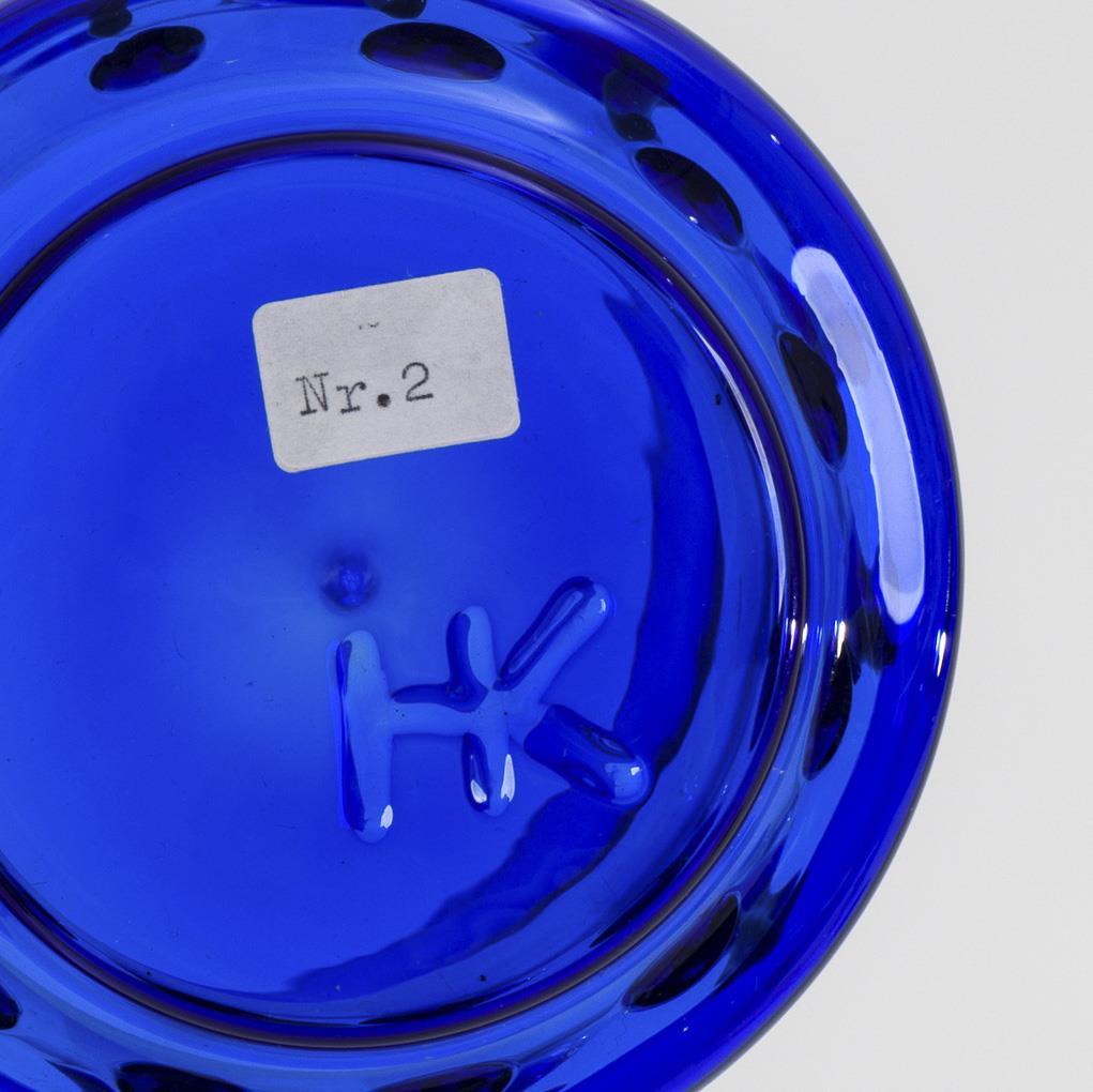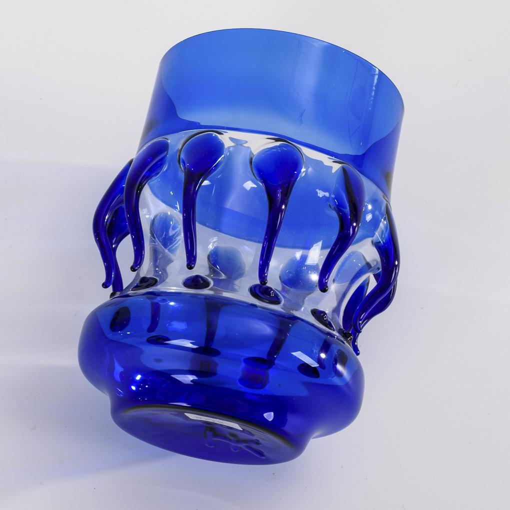 Farbloses und kobaltblaues, lampengeblasenes und montiertes Glas. H 14 cm.