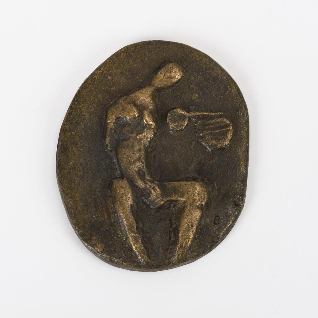 Plakette: Sitzende Frau