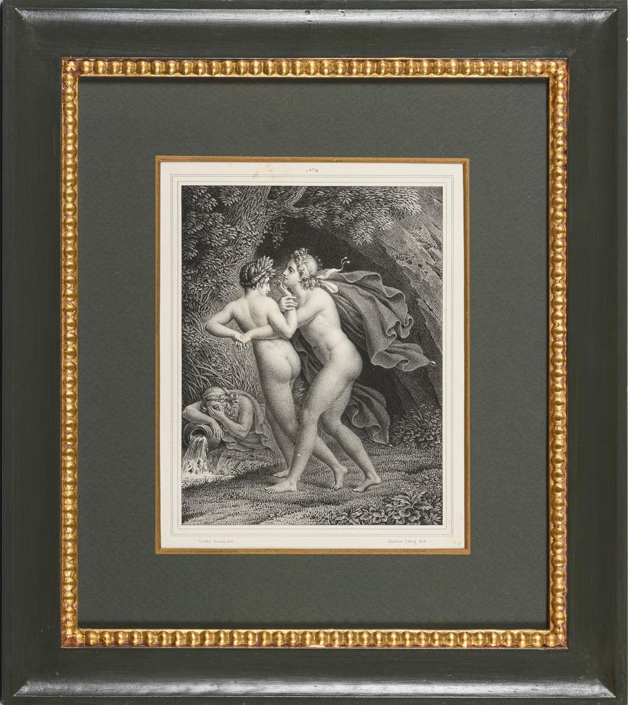 8 Szenen der griechisch-römischen Mythologie - No. 2 "Thétis et Pélée", No. 3 "Pan et Syrinx", No. 4 "Mort d'Adonis", No. 5 "Jupiter et Jo", No. 7 "Lytie Métamorphose en Heliotrophe", No. 10 "Jupiter et Calisto", No. 12 "Jupiter et Sémélé", No. 14 "Apollon et Daphne" und No. 15 " Jupiter et Junoe"; nach Gemälden von Anne-Louis Girodet-Trioson. Je minimal bis etwas stockfleckig.